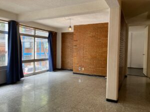 Departamento de 75m2, en primer piso, muy iluminado, con 2 recámaras con closets, 1 baño, cocina integral y estancia comedor amplios con área de lavado dentro del departamento y área de tendido en la azotea. No tiene estacionamiento. Se acepta una mascota pequeña o mediana. Mantenimiento $600.00.